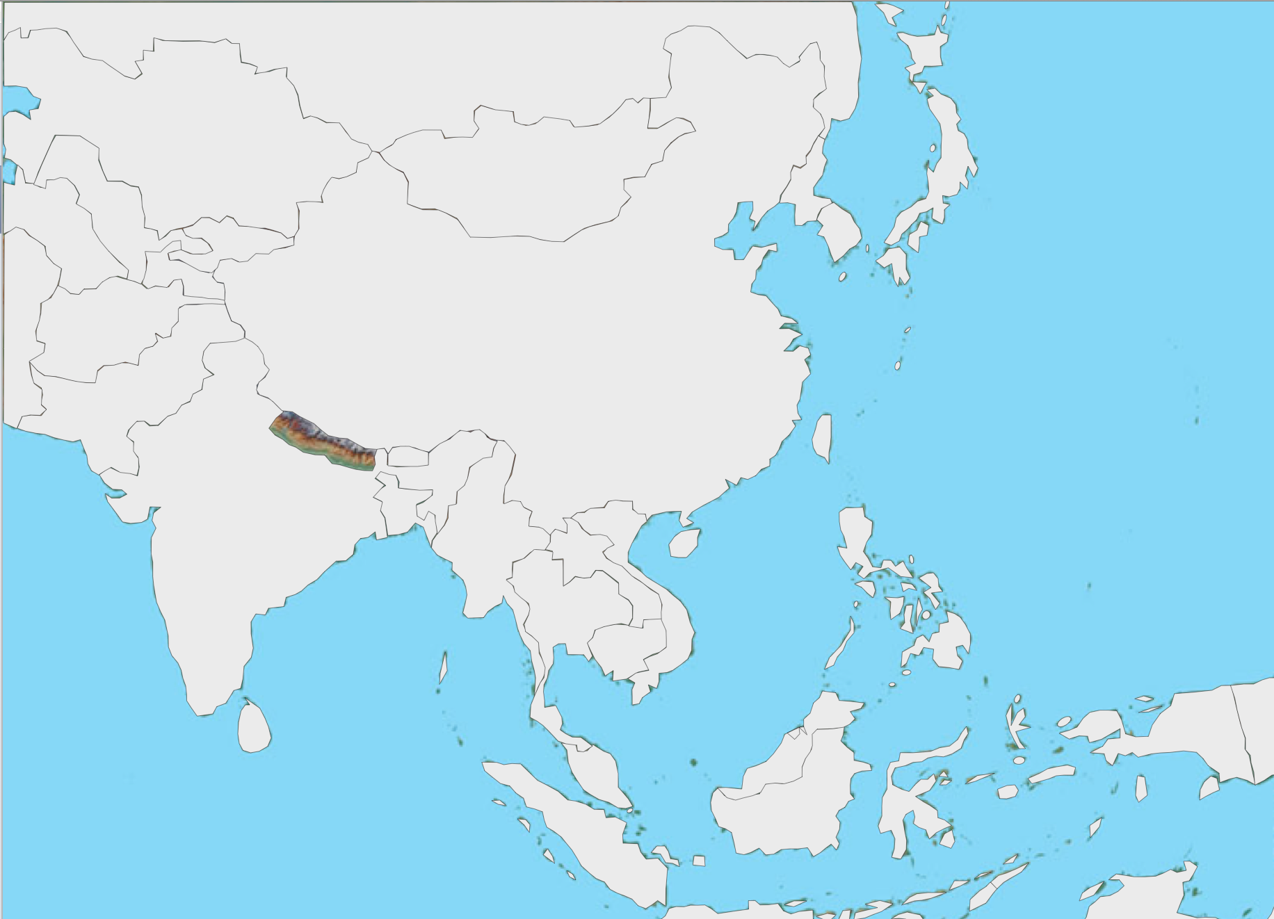 • Geopolitical map of Eastern and Southern Asia superimposed on physical map (Eastern and Southern Asia)