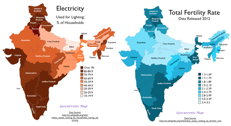 • Electricity vs. Total Fertility Rate, 2012 (India)