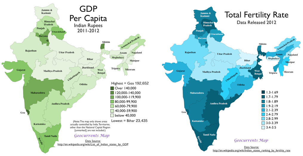 • GDP per capita vs. Total Fertility Rate, 2012(India)