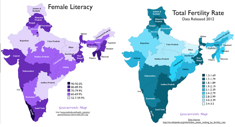 • Female literacy vs. Total Fertility Rate, 2012 (India)