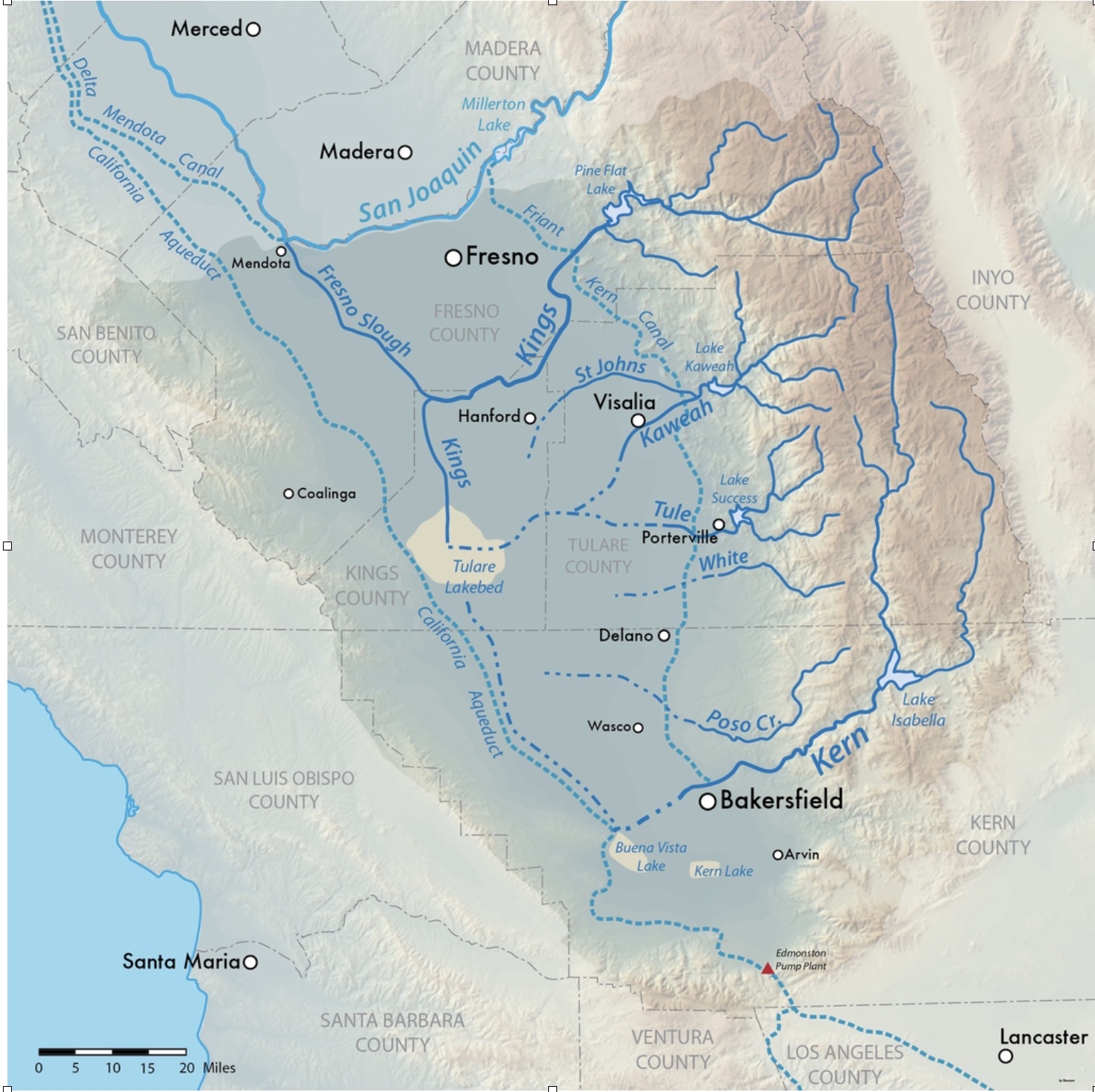 But regardless of human plans and desires, Tulare Lake will probably reappear this spring, if only for a short period, owing to the extremely heavy precipitation that has been experienced this winter in the southern Sierra. Tulare County has already seen levee-breaks and the flooding of several towns, and water is now beginning to accumulate in the old lakebed. Local flooding could easily persist as snowmelt begins in April or May. Noting such factors, a recent article by Dan Walters claims that “It’s almost certain that Tulare Lake will once again spring to life.” Walters concludes by arguing that, “the probability is generating some hopeful, if unrealistic, speculation that state and or federal governments could buy up the lakebeds fields and bring back to Tulare lake permanently.”