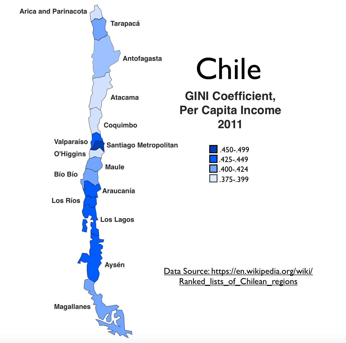 • GINI coefficient, per capita income, 2011