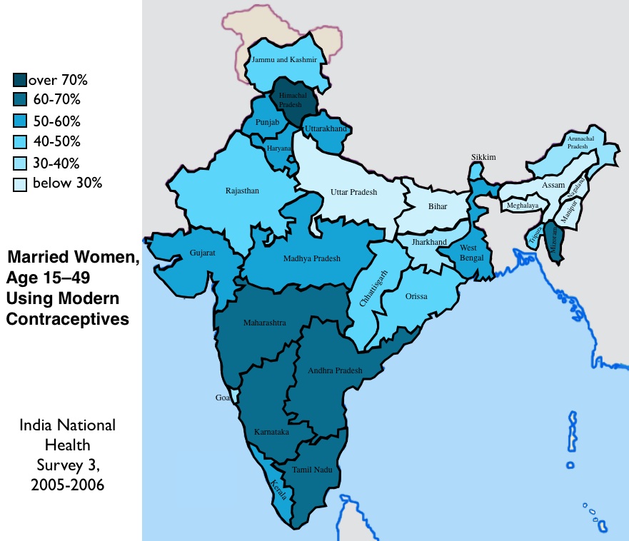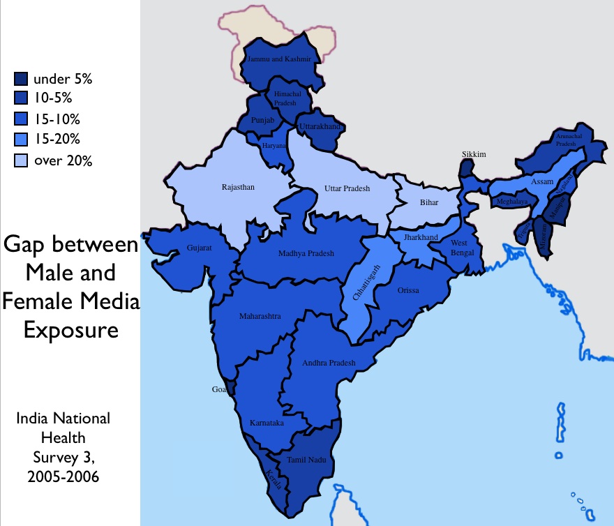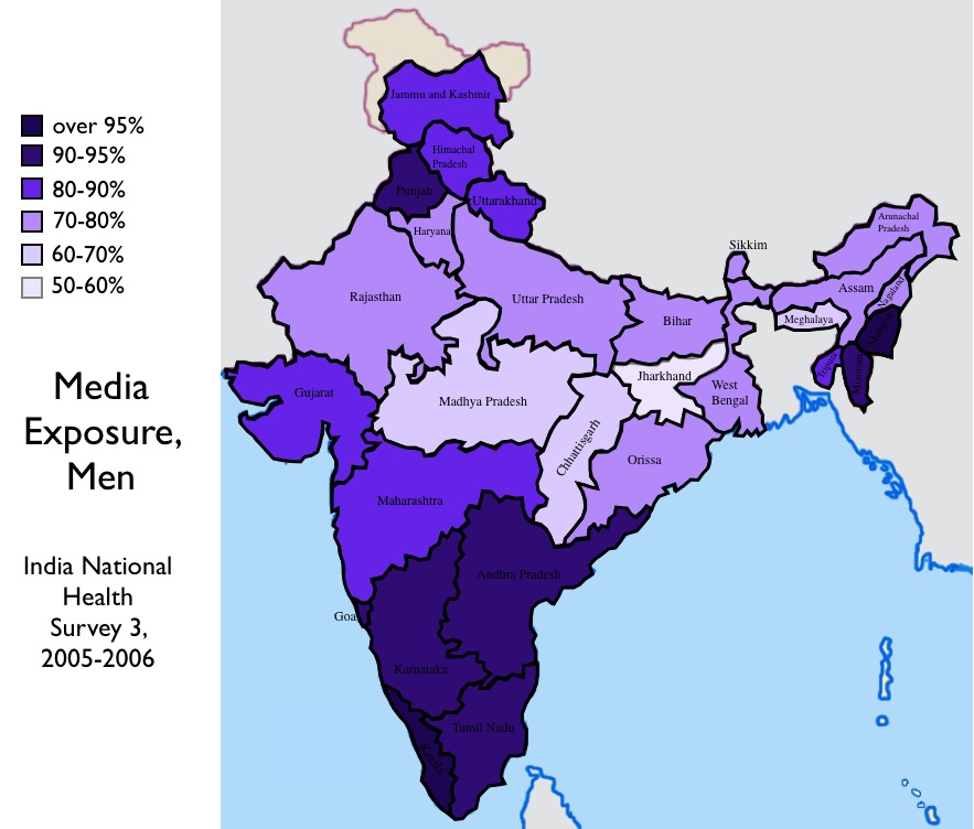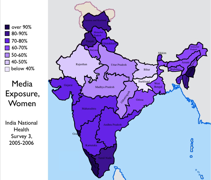 - Percentage of women exposed to media vs. Total Fertility Rate, 2012