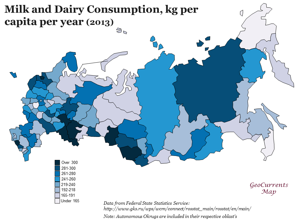 • Milk and Dairy Consumption, per capita, per year, 2013