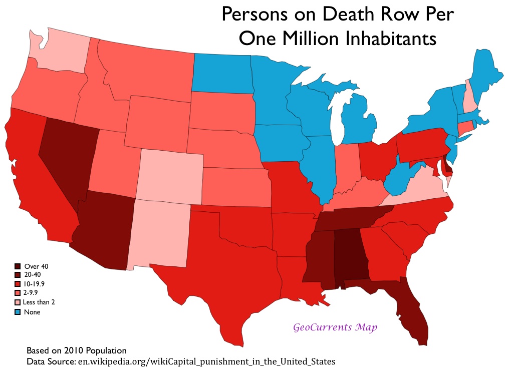 • Persons on death row per 1,000,000 inhabitants (USA)