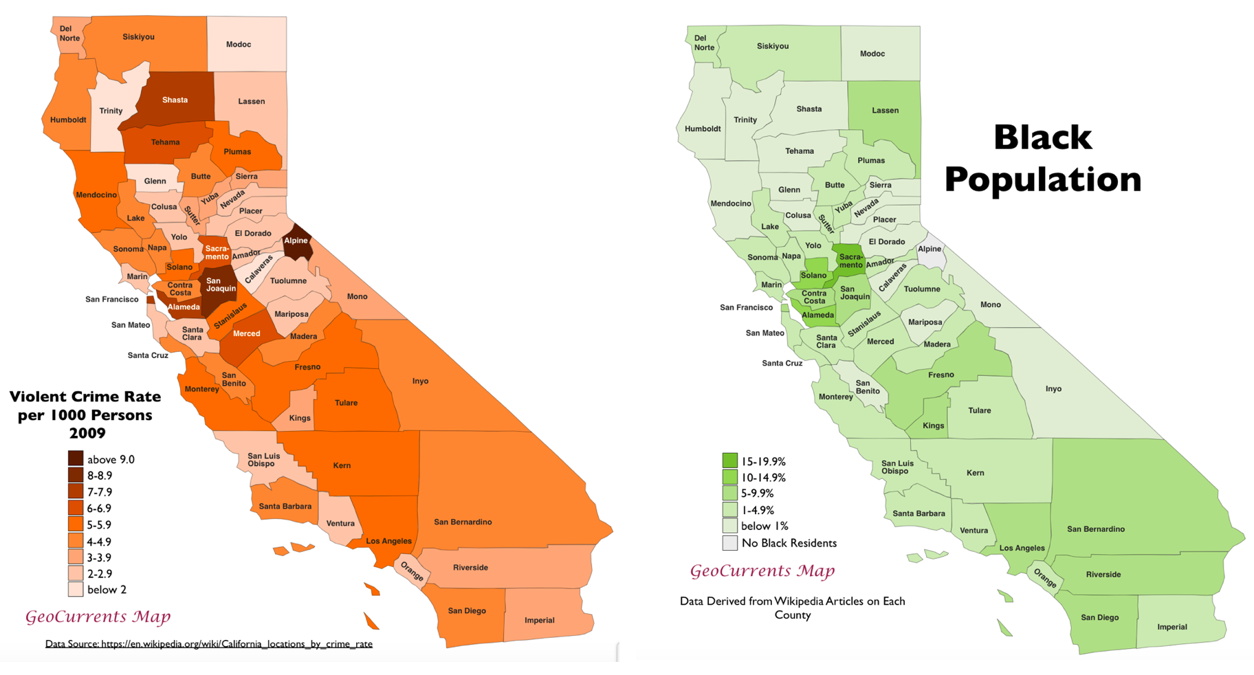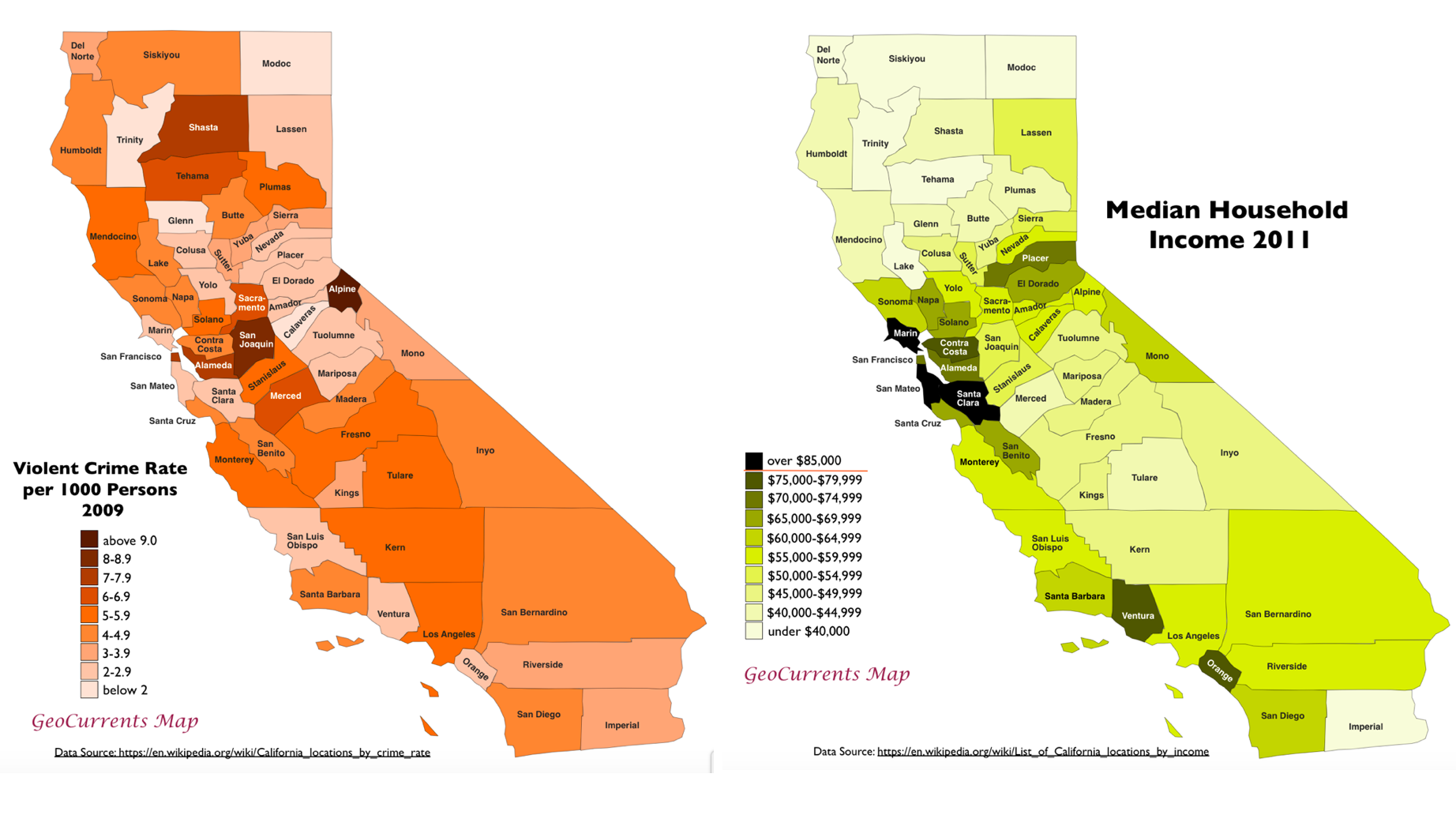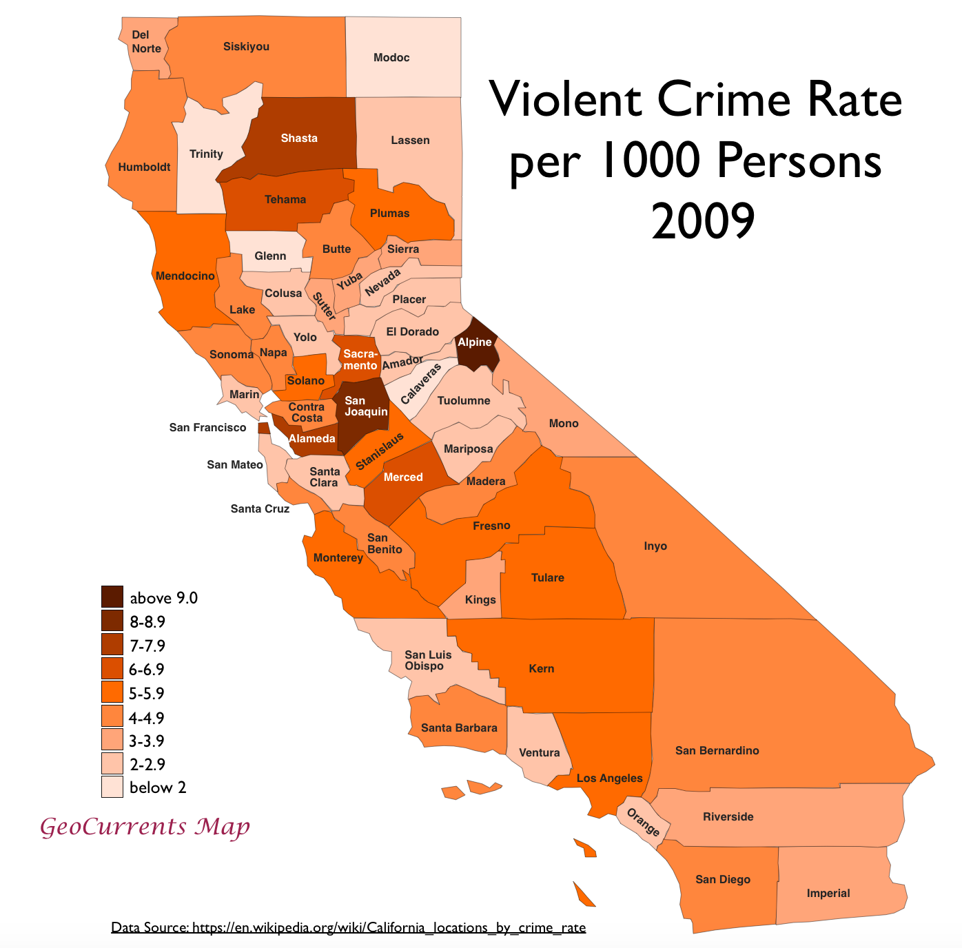 • Violent crime rate per 1,000 persons, 2009 (California)