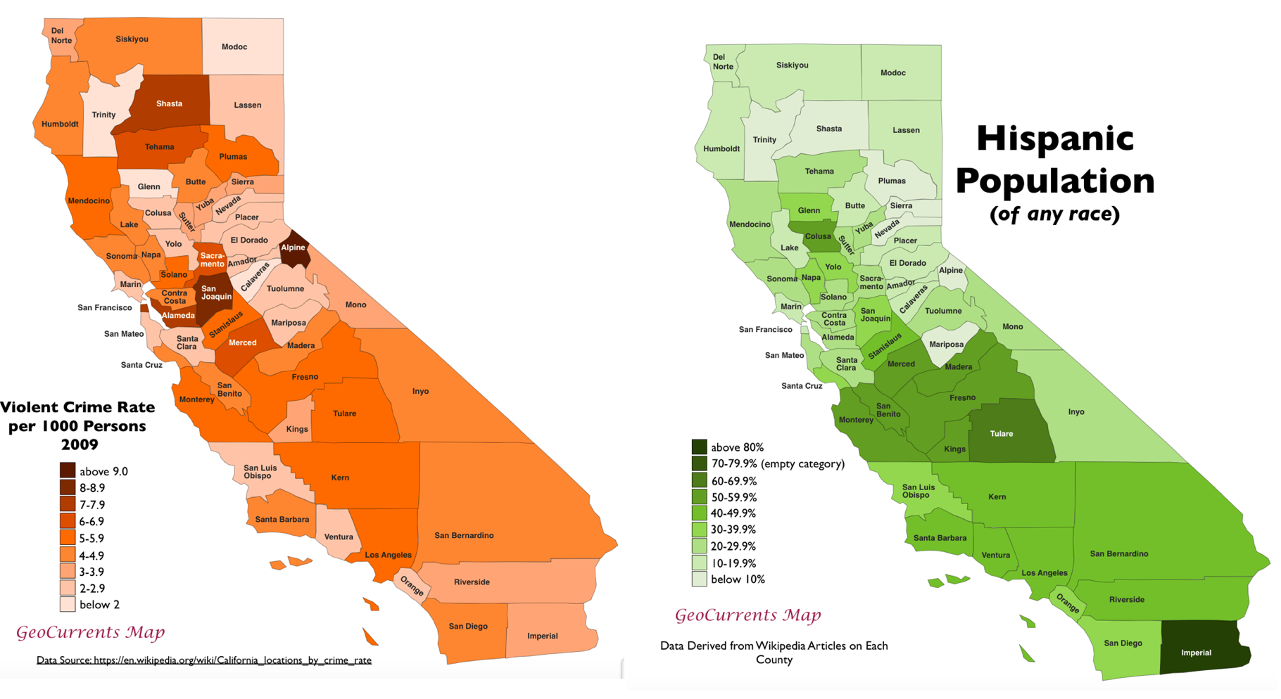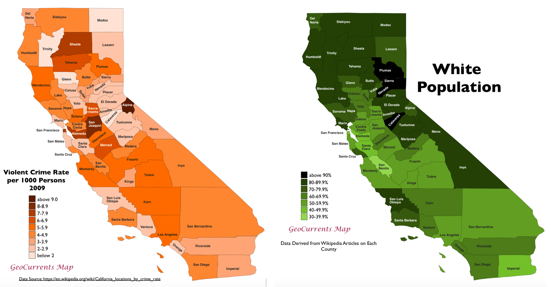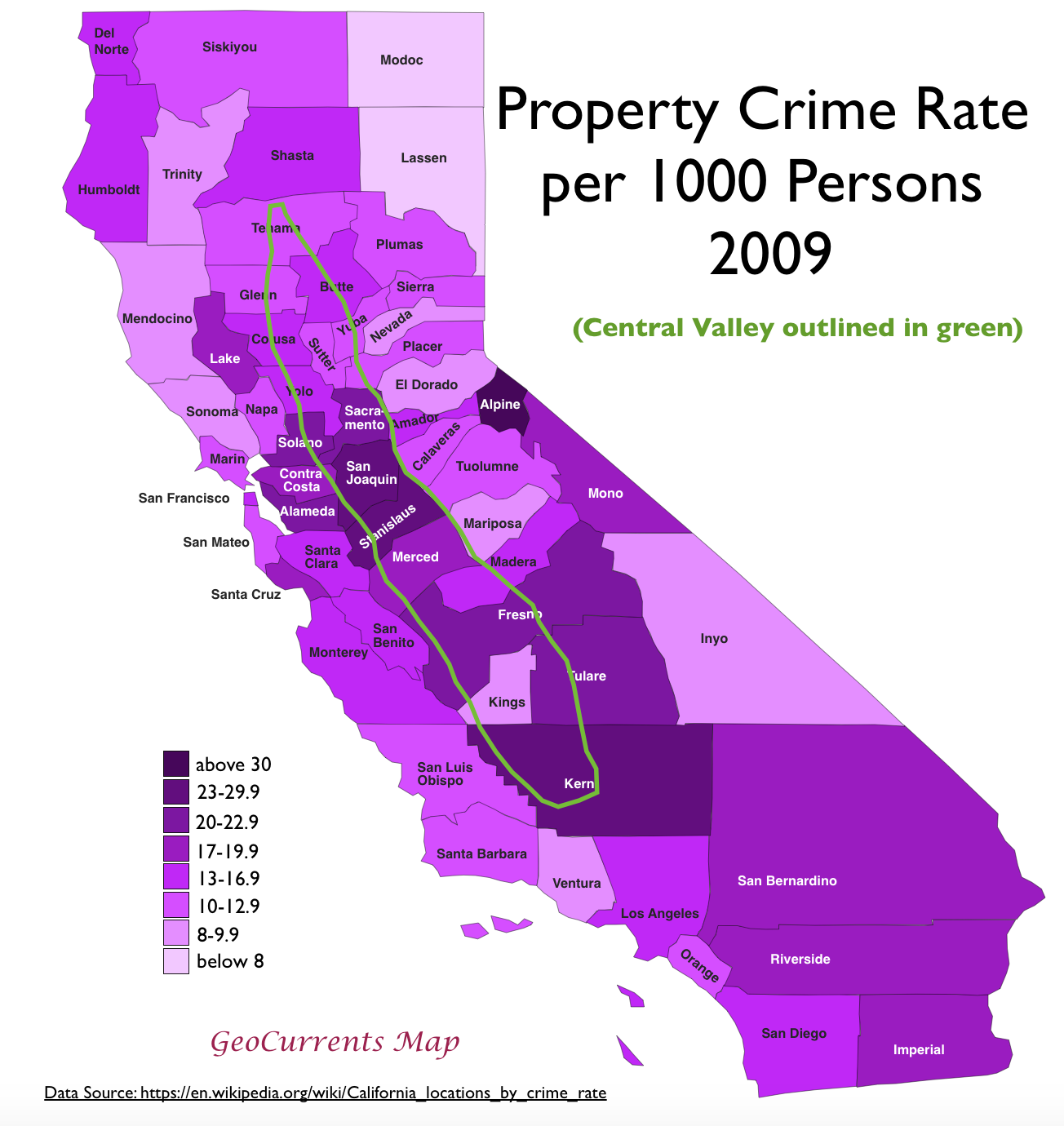 • Violent crime rate per 1,000 persons, 2009 (California)